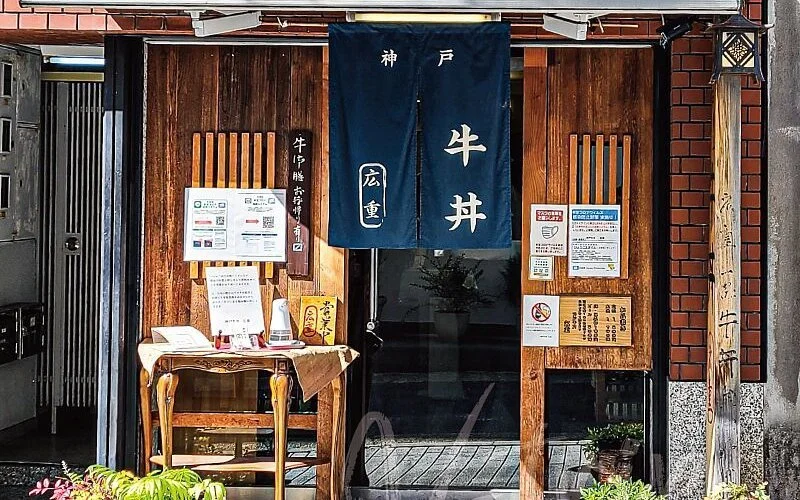 In Kobe’s Kitano area, just a short walk up Fudōzaka, you’ll find Kobe Gyudon Hiroshige — a small restaurant with a very simple idea: Kobe Beef, served as gyudon.